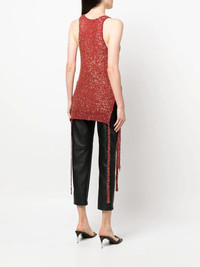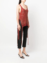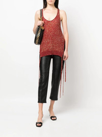 sequin-embellished knit tank top Constructed for a textured knit, this Stella McCartney tank top is embellished with all-over sequins that catch the light and reflect the design's rust-red hue. The long length is accentuated by matching straps that hang from the hem. Made in Italy Composition Polyamide 55%, Polyester 45% SIZE & FIT Model measurements Height 5 ft 10 in(1.78 m) Bust/Chest 31.49 in(80 cm) Hips 36.22 in(92 cm) Waist 25.59 in(65 cm) FittingInformation This piece fits true to size. We recommend you get your regular size Cut for a slim fit Made with a mid-weight fabric Washing instructions Dry Clean Only