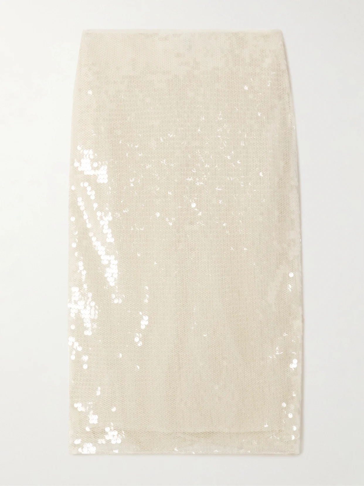 Stella McCartney's skirt is cut from mesh with a sheer tulle lining, so be sure to underpin yours with tonal briefs. It's drenched in scores of shimmering sequins and has a figure-skimming silhouette and back split. Lower-Impact Materials. This product is made using at least 50% lower-impact materials or ingredients. Find out more about our NET SUSTAIN criteria here.