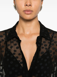 polka-dot shirt Highlights - Black - Polka-dot pattern - Button fastening - Long sleeves Imported Composition Silk 88%, Polyester 12% SIZE & FIT Model measurements Height 5 ft 9 in(1.76 m) Bust/Chest 31.88 in(81 cm) Hips 35.43 in(90 cm) Waist 24.8 in(63 cm) Washing instructions Do Not Wash/Do Not Dry Clean