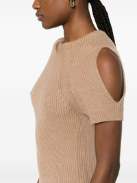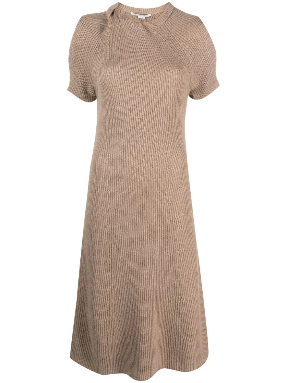 short-sleeve ribbed-knit midi dress Highlights - Light brown - Cashmere blend - Ribbed knit - Knot detailing - Round neck - Short sleeves - Ankle-length - Straight hem Imported Composition Recycled Cashmere 64%, Viscose 33%, Wool 3% SIZE & FIT Model measurements Height 5 ft 10 in(1.77 m) Bust/Chest 34.64 in(88 cm) Hips 35.43 in(90 cm) Waist 24.8 in(63 cm) FittingInformation Designed for a slim fit that sits just away from the body offering a close yet comfortable fit Made with a midweight knit, this piece offers some stretch This piece fits true to size – take your usual size