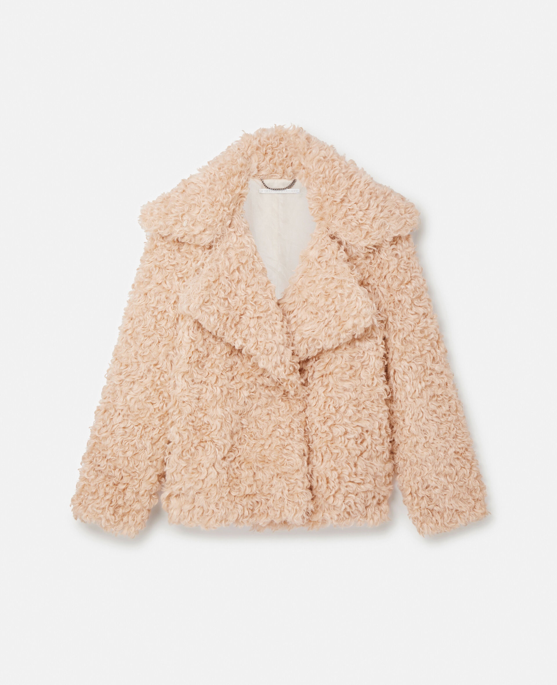 Item 6600523CU9029561 This oversized short coat from Stella McCartney is crafted from our cruelty-free teddy fabric with a snug, crimped texture. A widespread collar and longer sleeves create a contemporary silhouette. - Colour: Oat - Oat cream - Teddy vegan alternative to animal fur - Widespread collar - Long sleeves - Concealed snap button fastenings - Fully lined - Made in Italy Product Care & Fit Advice - Care: Dry clean only - Composition: Main fabric: 100% polyester, Lining: 100% cupro - Fits true to size - Designed for a regular fit - Mid-weight, non-stretch fabric - Model is 5ft 10.5in./1.79m, is a size UK 6 and wears a size IT 40 (US 4-6/UK 8/FR 36)