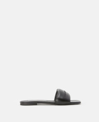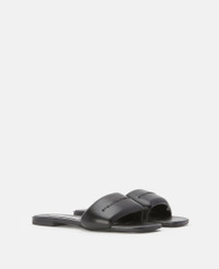 Autumn 2022 is made for an ambitious Stella McCartney woman – desiring to be her best self in all aspects of her life, reflecting her dynamic moods and ageless attitudes. We revisit classic statement pieces that every wardrobe needs, bringing them into the now and elevating them with signature Stella twists - Colour: Black - Flat slides - Slip-on style - Embellished with refined, micro-injected Stella McCartney logo - Made in Italy Product Care & Fit Advice - Care: Spot clean only with soft damp cloth - Composition: Upper: 51% Polyester, 49% Aliphatic solvent; Outsole: 100% Thunit - 5 mm heel height - Fits true to size - All of our shoes and accessories are made from non-leather materials in keeping with our cruelty-free ethos.