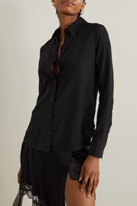 EDITORS'NOTES "I'm forever in a rush, so I'm always looking for something easy that I can throw on," says Stella McCartney - a sentiment that's reflected in her timeless collections. This shirt is cut from silk crepe de chine and has a close fit. Style yours with denim or tailoring, depending on your plans. SIZE & FIT - Fits true to size, take your normal size - Cut for a loose fit - Mid-weight, non-stretchy fabric - Model is 180cm/ 5'11" and is wearing an IT 40 DETAILS & CARE - Black silk crepe de chine - Button fastenings through front - 100% silk - Dry clean