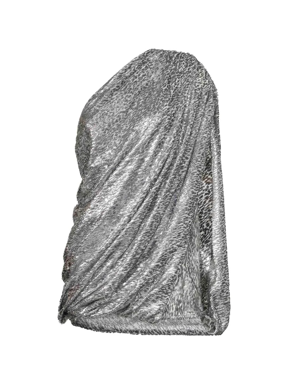 one-shoulder gathered dress Highlights - Silver-tone - One-shoulder neckline - Gathered detailing - Cape-style sleeve - Draping Made in Italy Composition Polyester 73%, Silk 27% Washing instructions Read Manufacturer Guidelines