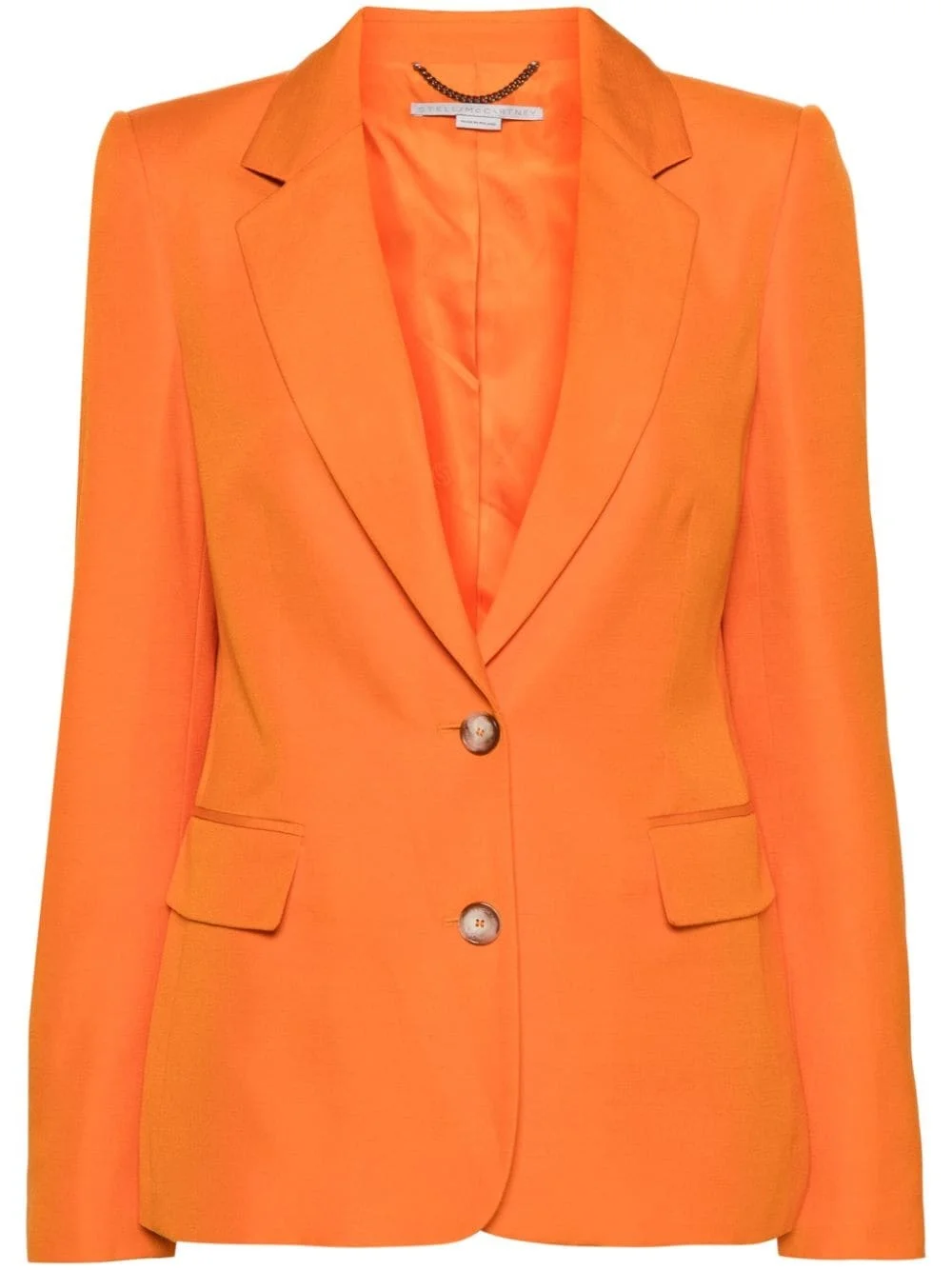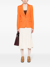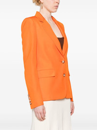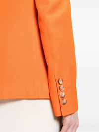 single-breasted blazer Highlights - Pumpkin orange - Slub texture - Notched lapels - Shoulder pads - Long sleeves with buttoned cuffs - Dart detailing - Front flap pocket - American rear vent - Logo-jacquard lining - Internal patch pocket - Straight hem - Front button fastening Imported Composition Outer: Viscose 100% Lining: Viscose 60%, Cupro 40% SIZE & FIT Model measurements Height 5 ft 9 in(1.75 m) Bust/Chest 34.64 in(88 cm) Hips 36.61 in(93 cm) Waist 26.37 in(67 cm) FittingInformation Designed for a slim fit that sits just away from the body offering a close yet comfortable fit The internal shoulder pads offer a structured shape Made from a midweight non-stretch fabric This piece fits true to size – those with a fuller chest may wish to take one size up Measurement BUST 31.49 in(80 cm) WAIST 29.92 in(76 cm) SLEEVE LENGTH 18.5 in(47 cm)