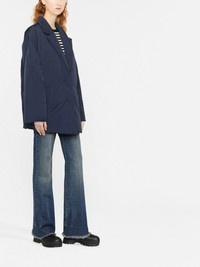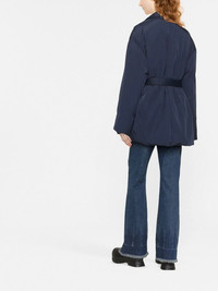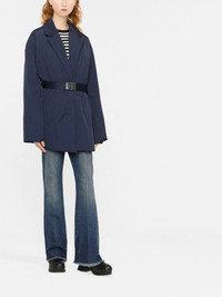 single-breasted jacket Highlights - Navy blue - Notched lapels - Concealed front fastening - Long sleeves - Slip pockets to the sides Imported Composition Outer: Polyamide 100%, Brass 100% Lining: Polyester 100% SIZE & FIT Model measurements Height 5 ft 10 in(1.78 m) Bust/Chest 31.49 in(80 cm) Hips 35.43 in(90 cm) Waist 24.4 in(62 cm) FittingInformation This piece fits true to size. We recommend you get your regular size Cut for a loose fit. Comes with an adjustable belt for a flexible fit at the waist Made with a mid-weight non-stretch fabric Washing instructions Dry Clean Only