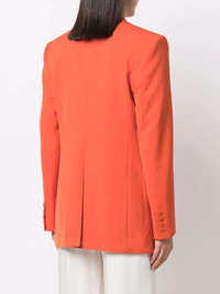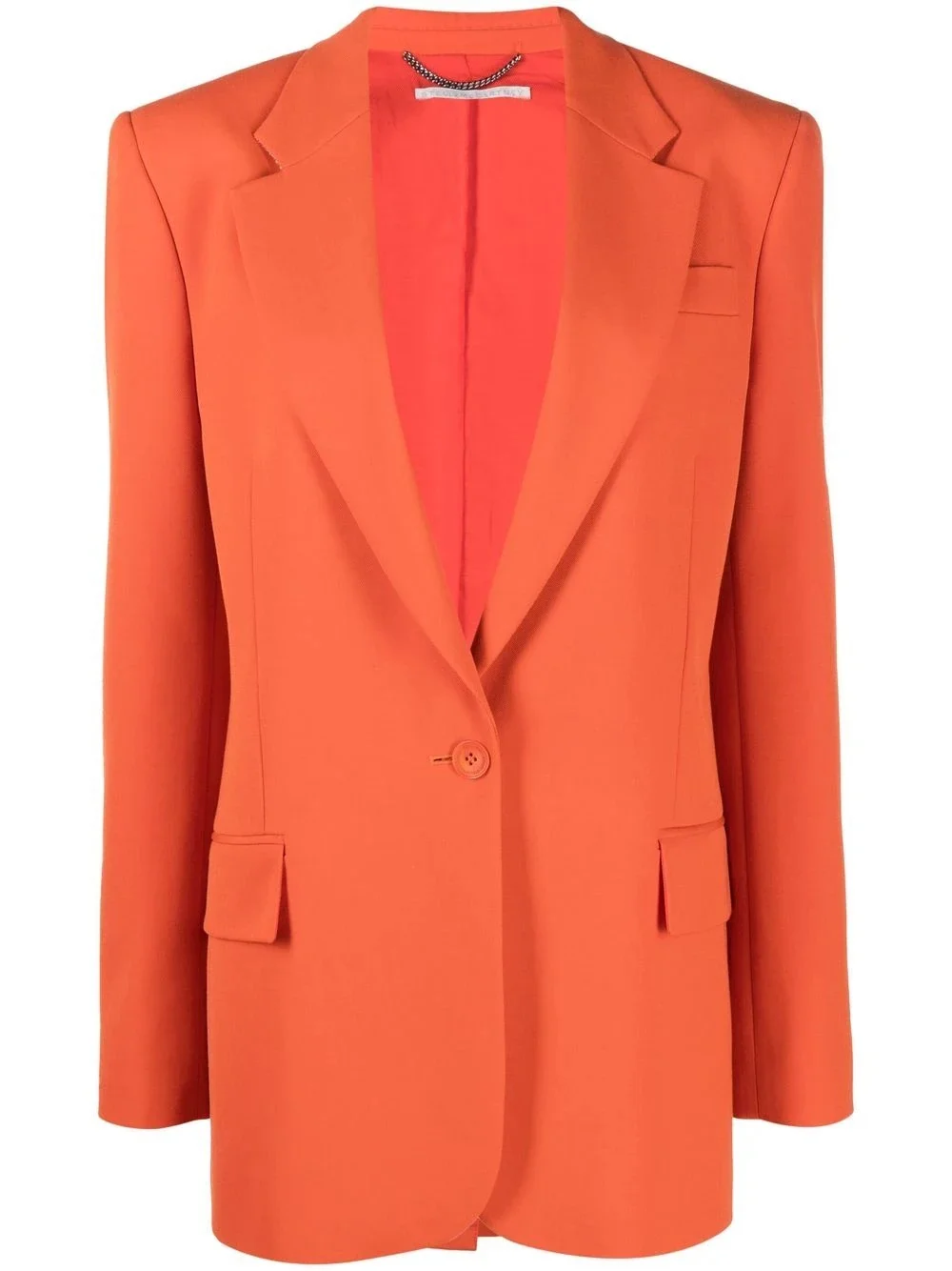 single-breasted tailored blazer Imbued with vibrant tones, Stella McCartney's AW22 collection includes this single-breasted blazer. In a citric shade of orange, this tailored piece encapsulates the brand's colourful new direction. Highlights - Orange - Organic wool-blend - Notched lapels - Front button fastening - Chest welt pocket - Two front flap pockets - Central rear vent Made in Italy Composition Outer: Polyester 53%, Organic Wool 47% Lining: Fabric 100% SIZE & FIT Model measurements Height 5 ft 11 in(1.8 m) Bust/Chest 33.07 in(84 cm) Hips 37.4 in(95 cm) Waist 25.19 in(64 cm) Measurement SLEEVE LENGTH 25.59 in(65 cm) LENGTH 30.31 in(77 cm) FittingInformation This piece fits true to size. We recommend you get your regular size Cut for a loose fit Made with a mid-weight non-stretch fabric Washing instructions Dry Clean Only