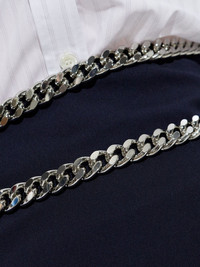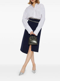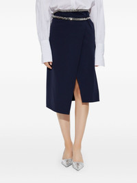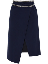 chain-embellished skirt Highlights - Navy blue - Concealed side zip fastening - Chain-link detailing - Asymmetric hem Imported Composition Metal 100%, Wool 97%, Elastane 3%