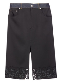 lace-trim midi skirt Highlights - Black and blue - Five pockets - Lace trim - Zip and button closure Made in Italy Composition Cotton 100%, Acetate 73%, Viscose 27% Washing instructions Read Manufacturer Guidelines