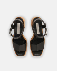 Item 810360AP00P01000 - Colour: Black - Midnight black - VEGEA vegan alternative to animal leather using grape waste - Front band - Buckle fastening ankle strap - Chunky cork platform heel - Made in Italy Product Care & Fit Advice - Care: Spot clean only with soft damp cloth - Composition: Upper: 53% recycled polyester, 47% grape-based polyurethane, Lining: 76% grape-based polyurethane, 24% viscose, Midsole: 100% natural cork - 110mm heel - Fits true to size - All of our shoes are made from non-leather materials as part of our cruelty-free ethos.