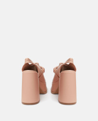 Take Spring 2023 looks up a notch with our Skyla platform sandals. Furthering the iconicity of our Skyla boots, these sandals feature a chunky Falabella chain front with a season-ready peep toe and slingback strap. - Colour: Sunset Rose - Light rose pink - Smooth Alter Mat vegan alternative to animal leather upper - Tonal signature diamond-cut chain on strap - Peep toe - Slingback strap - Chunky platform heel - Made in Italy Product Care & Fit Advice - Care: Spot clean only with soft damp cloth - Composition: Upper: 60% polyurethane, 40% polyester, Lining: 64% polyurethane, 36% viscose, Outsole: 45% styrene butadiene, 30% rubber, 25% recycled rubber - 110mm heel - Fits true to size - All of our shoes are made from non-leather materials as part of our cruelty-free ethos.