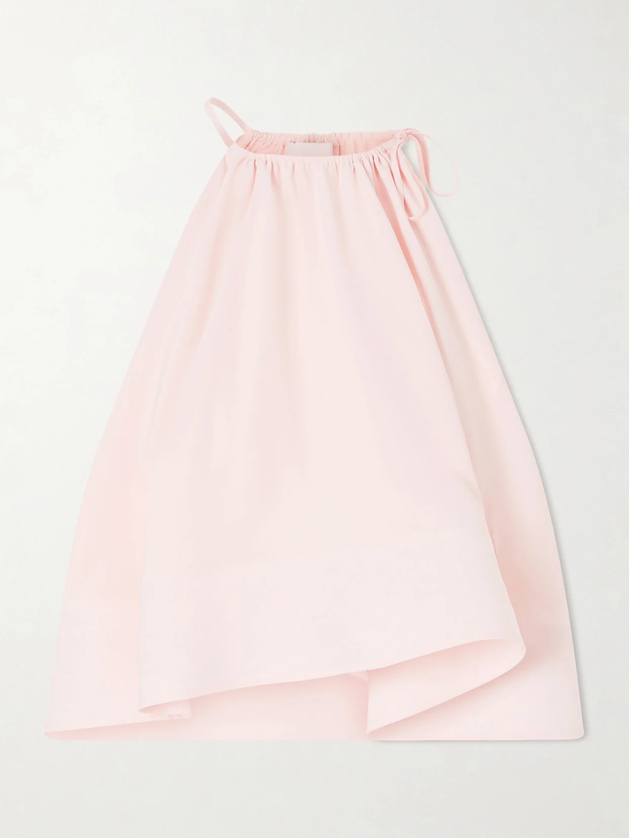 Stella McCartney's top introduces a sense of lightness within the collection. Cut from fluid silk, the sleeveless silhouette is shaped by a gathered neckline and layered frill that moves with the body, balancing volume and control with a consciously driven approach to modern femininity.
