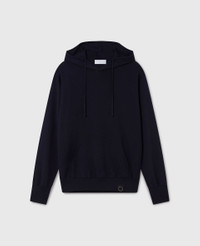 Item 6K10233S25784000 Spun from a supremely soft, light blend of RWS-certified wool, this sweater is topped with a drawstring hood and cut to a slouchy, loose-fitting silhouette for maximum comfort. Slip it on with the coordinating pants for a cozy, consciously crafted look. - Color: Navy - Drawstring hood - Long sleeves - Dropped shoulders - Elasticated, ribbed trims - Front pouch pocket - Made in Italy Product Care & Fit Advice - Care: Dry clean only - Composition: 95% Wool, 4% polyamide, 1% elastane - Fit: Regular fit - Sizing: Take your usual size - Model is 179cm or 5' 10.5"