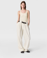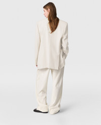 Item 640280SSA369200 Savile Row tailoring is foundational to every Stella McCartney collection, embodying her signature masculine-yet-feminine perspective. For Summer 2025, these pants are immaculately constructed from fully traceable RWS-certified wool and tailored to a low-rise, straight-leg silhouette with exaggerated belt loops that stream into panels. Pair them with the coordinating blazer. - Color: White - Mid-rise - Exaggerated belt loops - Two pockets - Large panels running down the center of each leg - Low crotch - Button and zipper-fly fastening - Made in Italy Product Care & Fit Advice - Care: Dry clean only - Composition: 100% Wool - Fit: Loose fit - Sizing: Take your usual size - Model wears a size 40 IT or 8 UK