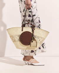 Item 7B0166WP05939370U Our timeless Logo large tote bag is reimagined for High Summer in renewable iraca palm straw, handwoven and crocheted in a fair-trade and safe workshop by female artisans in Colombia – keeping traditional skills alive while protecting our planet for tomorrow. Iraca palm is an incredibly durable, easy-to-grow plant that supports soil health and absorbs greenhouse gasses. The luxury vegan bag is hand-finished in Italy with a Stella McCartney logo, embroidered on the front, and lined with soft organic cotton. - Color: Natural beige - Comfortably fits all phones and wallets alongside daily essentials - Iraca palm weave - Stella McCartney logo hand-embroidered vegan leather alternative logo on front - GOTS-certified organic cotton lining - Two top handles - One crossbody strap - One main compartment - Stainless steel and recycled brass hardware - Handcrafted in Madagascar Product Care & Fit Advice - Care: Spot clean only with soft damp cloth. - Composition: 100% Raffia - Fits all 15” laptops, beach towel and daily essentials. - Size: 6.6 x 11.4 x 6.2 in - Handle drop: 5.1 in - Strap length: 10.6 in - All of our shoes and accessories are made from non-leather materials in keeping with our cruelty-free ethos.