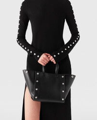 Item 7B0118WP04751000U Introduced on the Winter 2024 runway, this crossbody tote bag is a vegan luxury staple. Each is handcrafted in Italy from our signature cruelty-free animal leather alternative and topped with silver flat studs, continuing this season’s popper story. Equipped with a detachable crossbody strap and two top handles, it’s easily slung across or carried with any Stella look. - Color: Pitch black - Comfortably fits 15” laptops alongside daily essentials - Vegan, cruelty-free leather alternative - Two top handles - One main compartment - Detachable pouch inside - Fully lined with conscious materials - Made in Italy - All of our shoes and accessories are made from non-leather materials in keeping with our cruelty-free ethos. Product Care & Fit Advice Care: Spot clean only with soft damp cloth. Composition: 100% Polyester - Fit: Comfortably fits 15” laptops alongside daily essentials. - Size: 8.6/15.9 in x 7.8 in x 5.5 in - Handle drop: 21.2/22.2 in - Strap length: 23.2 in