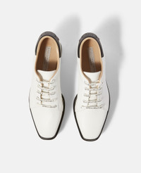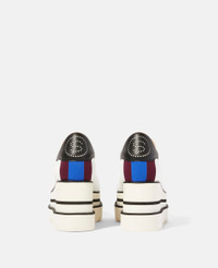 Item 810078E000549222 Our vegan Sneak-Elyse trainers are a dichotomy of masculinity and femininity, pairing the Elyse's iconic platform heel with sporty logo details and stripes. The lace-up platforms feature our signature wedge heel and saw-edge micro sole, taking its athletic and ageless attitude a step further. - Colour: White - Pure snow white - Smooth Alter Mat vegan alternative to animal leather upper - Angular square toe - Lace-up fastening - Maroon and blue striped ribbon at back heel - Black and white wedge heel - White signature saw-edge micro sole - Fully lined - Made in Italy Product Care & Fit Advice - Care: Spot clean only with soft damp cloth - Composition: Upper: 51% polyurethane, 34% cotton, 15% polyester - 80mm platform - The Sneak-Elyse runs large; therefore, we recommend going one size down from your usual shoe size. - All of our shoes and accessories are made from non-leather materials in keeping with our cruelty-free ethos.