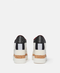 Item 810363E001799001 Step into the now in our Sneak-Elyse platform sneakers, consciously crafted from VEGEA – a vegan, grape-based alternative to animal leather. They give a sporty twist to our iconic Elyse platform shoes, with logo detailing and heel stripes elevated on a multicolored wedge heel and saw-edged sole. - Color: White - Pure white - VEGEA vegan alternative to animal leather using grape waste - Screen-printed Stella McCartney logo on upper - Two-tone recycled polyester ribbon at back - S perforated logo at back heel - Angular square toe - GOTS-certified organic cotton lace-up fastening - White and cork wedge heel - Signature saw-edge micro sole - Fully lined - Lace-up fastening - Made in Estonia Product Care & Fit Advice Care: Spot clean only with soft damp cloth Composition: Main fabric: 53% recycled polyester 47% PU bio Size: Fits true to size