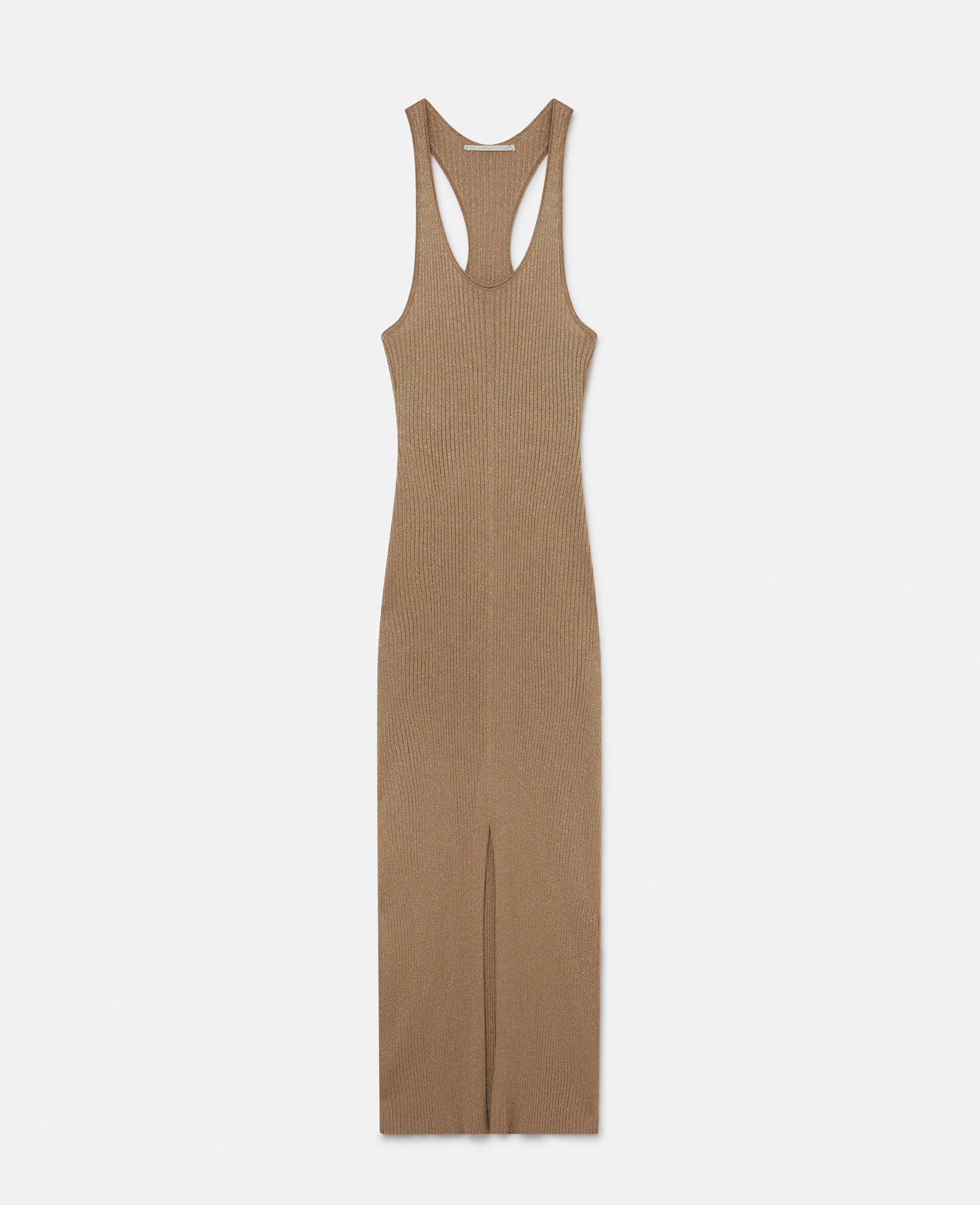 - Colour: Gold - Champagne gold - Forest-friendly viscose-blend rib knit - Gold sparkle - Scoop neck - Racerback - Split front hem - Made in Italy Product Care & Fit Advice - Care: Dry clean only - Composition: 77% viscose, 33% metallic fibre
