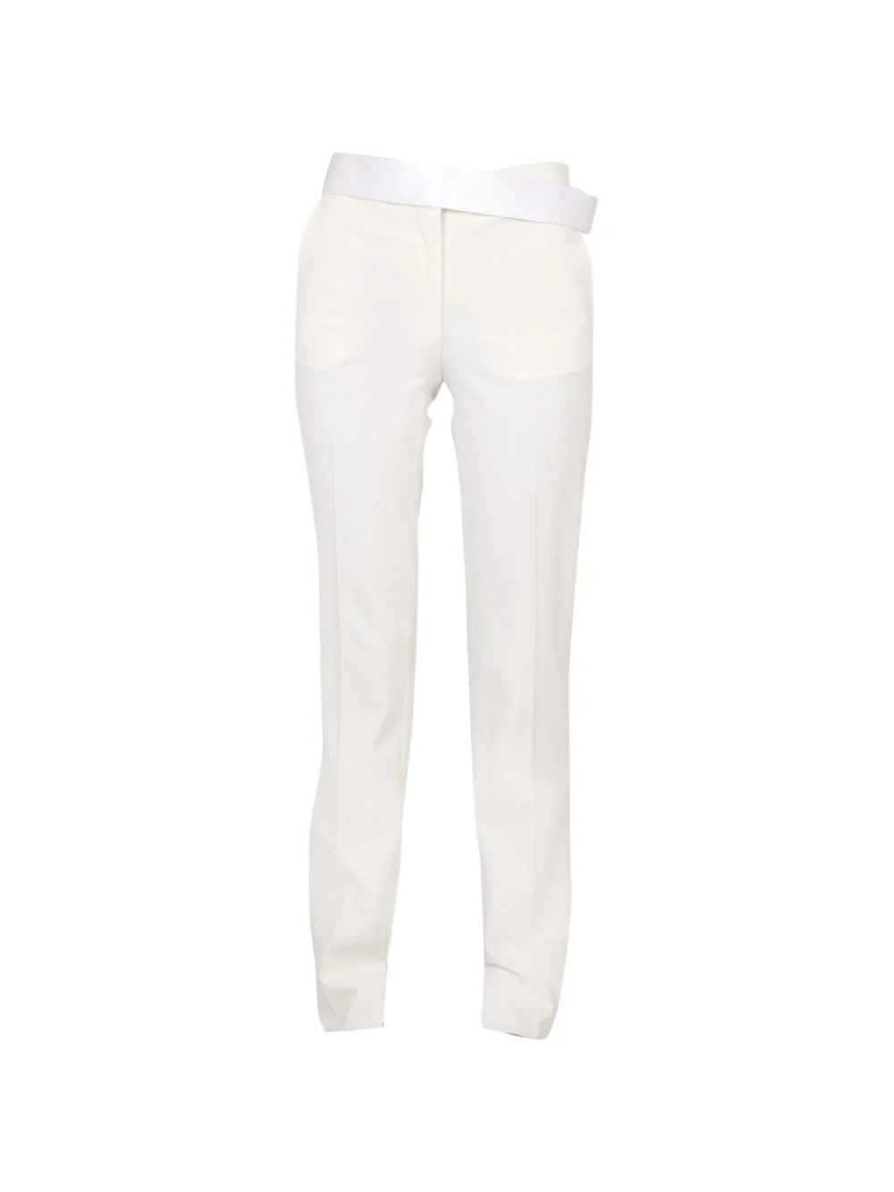 split hem trousers Highlights - White - Split hem - Belt - Side slip pockets - Back pocket Imported Composition Fabric 100% Washing instructions Read Manufacturer Guidelines