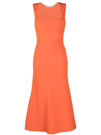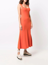 square-neck sleeveless flared dress In a bright orange hue with a flared cut, this sleeveless dress from Stella McCartney is elegantly detailed with a square neck. Highlights - Bright orange - Square neck - Sleeveless - Flared design - Long length Made in Italy Composition Viscose 83%, Polyester 17% SIZE & FIT Model measurements Height 5 ft 9 in(1.74 m) Bust/Chest 32.28 in(82 cm) Hips 35.82 in(91 cm) Waist 24.01 in(61 cm) Measurement LENGTH 47.63 in(121 cm) WAIST 29.92 in(76 cm) HIPS 39.37 in(100 cm)