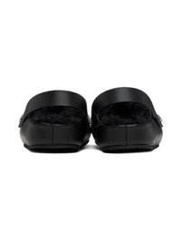Buffed faux-leather mules in black. · Graphic pattern embroidered at vamp · Convertible slingback strap · Logo patch at molded footbed · Faux-shearling lining · Crepe rubber sole · Logo-engraved silver-tone hardware Made from cruelty-free, non-animal materials. Supplier color: Black Upper: synthetic. Sole: rubber. Made in Italy 242471F121003
