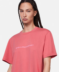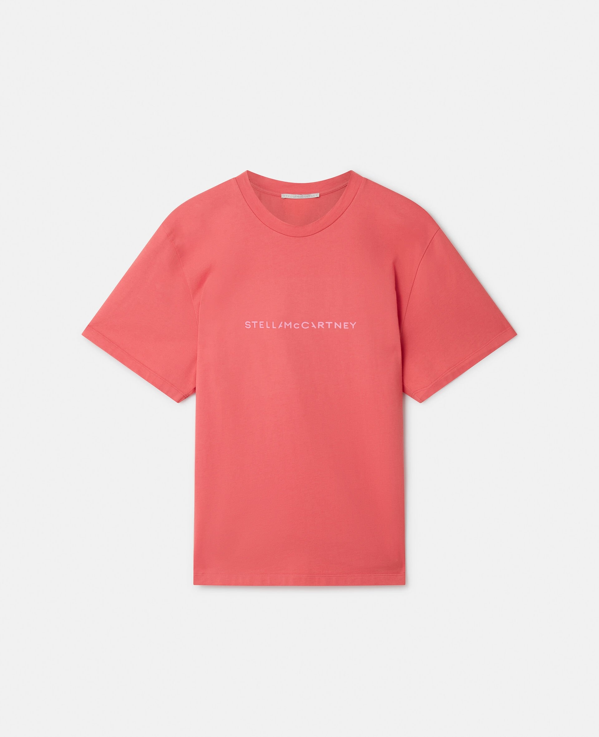 Item 6J01583SPY485680 - Colour: Raspberry - Raspberry pink - Organic cotton jersey - White ‘STELLA McCARTNEY’ lettering at front - Crew neck - Short sleeves - Dropped shoulders - Made in Portugal Product Care & Fit Advice - Care: Dry clean only - Composition: 100% organic cotton - Fits true to size - Designed for a relaxed fit - Lightweight, semi-stretch fabric