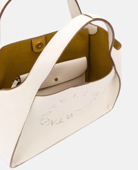 Item 513860W85429000U In a milky white shade, this Logo crossbody bag is an escapist, timeless design. Crafted consciously from Alter Mat, a smooth and petal-soft vegan alternative to leather, the tote has two top handles along with a crossbody strap and secure magnetic fastening for adaptable wear in the city. - Colour: White - Almond mulk white - Comfortably fits all phones, tablets and wallets alongside small daily essentials - Smooth Alter Mat vegan alternative to animal leather - Perforated Stella McCartney circular logo on front - Tonal single topstitching - Two top handles, and adjustable crossbody strap - One main compartment - Detachable pouch included - Magnetic snap fastening - Stainless steel and recycled brass hardware - Alter Suede lining - Made in Italy Product Care & Fit Advice - Care: Use a soft damp cloth with a small amount of demineralised water (likewise for ironing) and apply to all the material. Leave the bag to dry. Avoid scrubbing to prevent damaging the surface of the bag. As this accessory is made from very delicate fabric, we recommend handling with care and avoiding contact with any sharp objects, jewellery, or rough surfaces. When not in use, always store the item in its protective bag. - Composition: Main fabric: 56% polyurethane, 44% polyester, Handles: 56% polyurethane, 44% polyester, Lining: 50% polyamide, 50% solventless polyurethane - Fits all phones, tablets and wallets. - Size: 31.5 x 22 x 13cm - Handle drop: 13cm - Strap length: 50cm - Weighs approximately 0.46kg - All of our shoes and accessories are made from non-leather materials in keeping with our cruelty-free ethos.