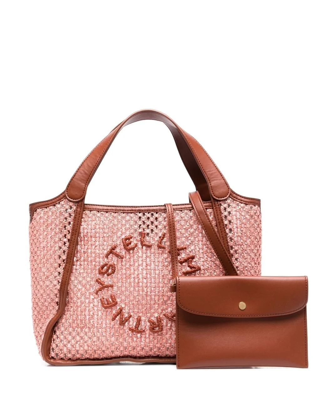 Stella Logo embroidered tote bag Stella McCartney's signature Logo bag arrives in a crabapple pink colourway and woven raffia construction for SS23. This roomy accessory benefits from two top handles and a versatile detachable shoulder strap, while a hand-embroidered circular logo embellishes the front for instant recognition. Highlights - Beige/brown - Mesh detailing - Embroidered logo - Two top handles - Removable pouch - Main compartment Made in Italy Composition Outer: Polyurethane 70%, Polyamide 30%