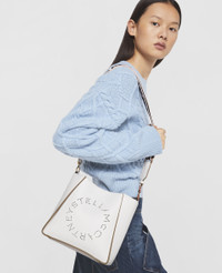 Our Stella McCartney Logo collection includes a variety of timeless, vegan styles perfect for any occasion. Echoing an escapist, nature-positive attitude, new Autumn 2022 Logo accessories feature refreshed colourways from earthy Sierra and military green to warped cheetah print and camel. - Colour: Pure White - Crossbody shoulder bag - Press-stud fastening, inner slip pocket - Embossed grainy-effect Alter Mat finishing - Made in Italy Product Care & Fit Advice - Care: Use a soft damp cloth with a small amount of demineralised water (likewise for ironing) and apply to all the material. Leave the bag to dry. Avoid scrubbing to prevent damaging the surface of the bag. As this accessory is made from very delicate fabric, we recommend handling with care and avoiding contact with any sharp objects, jewellery, or rough surfaces. When not in use, always store the item in its protective bag - Please do not machine wash, do not bleach, do not tumble dry, do not iron, do not dry clean - Composition: Main Material: 47% Polyurethane, 20% Bio Polyurethane, 20 Recycled Polyamide, 13% Polyamide; Lining: 50% Polyamide, 50% Polyurethane - Size: 23x23x8 cm - Strap: Min 42 cm / Max 67 cm - Weighs approximately 0.47 kg - All of our shoes and accessories are made from non-leather materials in keeping with our cruelty-free ethos.