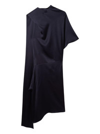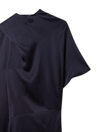 asymmetric draped midi dress Highlights - Navy blue - Draped design - Asymmetric hem - Short sleeve - Cowl neck Made in Italy Composition Acetate 73%, Viscose 27% Washing instructions Dry Clean Only