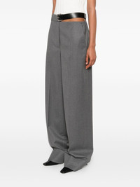 belted trousers Highlights - Grey - High waist - Belt - Straight pockets - Front pleats Imported Composition Wool 100%, Polyester 51%, Polyurethane 49% SIZE & FIT Model measurements Height 5 ft 10 in(1.77 m) Bust/Chest 33.07 in(84 cm) Hips 37 in(94 cm) Waist 24.8 in(63 cm) FittingInformation Designed for a straight-leg fit, these trousers allow for a close fit at the waist and an unrestricted, comfortable fit over the leg The belt offers adjustability for fitted preferences Made from a midweight non-stretch fabric Washing instructions Dry Clean Only
