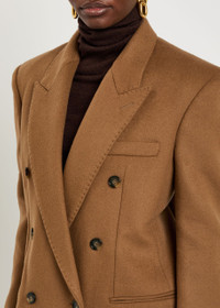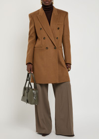 Info & Care Stella McCartney wool blazer Peaked lapels, padded shoulders, button-fastening cuffs, three slit pockets, darts through waist, partially lined Double-breasted button fastenings at front 100% wool; lining:;100% cupro Dry clean Size & Fit Length shoulder to hem: 38 inches/ 96.5cm Heavyweight Straight, longline cut Tailored style Model is 5'9"/ 175cm and wears a size;IT40
