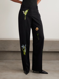 Embroidered Wool-twill Wide-leg Pants