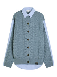 cable-knit buttoned cardigan Highlights - Blue - Cable knit - Button fastening - Long sleeves - Regular fit - Round neck Imported Composition Fabric 100% Washing instructions Read Manufacturer Guidelines