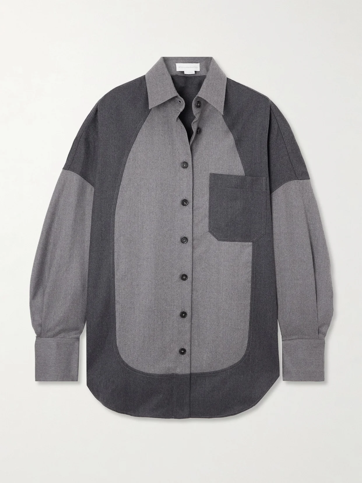Stella McCartney's oversized shirt offers a new perspective on utility style. Tailored from wool-twill, it's paneled in two shades of gray and has dropped shoulders for a relaxed look. Wear yours with the matching pants. Lower-Impact Materials. This product is made using at least 50% lower-impact materials or ingredients. Find out more about our NET SUSTAIN criteria here.