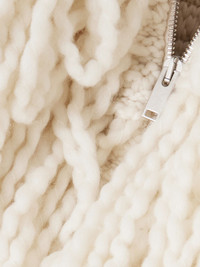 Stella McCartney’s Fall '25 collection channels the eclectic spirit of the 1970s, drawing from the wardrobes of her parents to merge rockstar glamour with refined tailoring. Part of the opening look, this jacket is made from a tactile fringed wool-blend in a voluminous shape with a plush feel and ribbed mock neck. Lower-Impact Materials. This product is made using at least 50% lower-impact materials or ingredients. Find out more about our NET SUSTAIN criteria here. Size & Fit - Fits true to size, take your normal size - Designed for a loose fit - Chunky knit - Model is 177cm/ 5'10" and is wearing a size Small Model measurements: - Bust: 80cm/ 31.5" - Waist: 60cm/ 23.5" - Hip: 89cm/ 35" Details & Care - Cream wool-blend - Two-way zip fastening through front - 98% wool, 1% elastane, 1% polyamide - Dry clean - This product has been made with responsibly sourced wool, originating from farms protecting animal welfare and implementing progressive land management practices