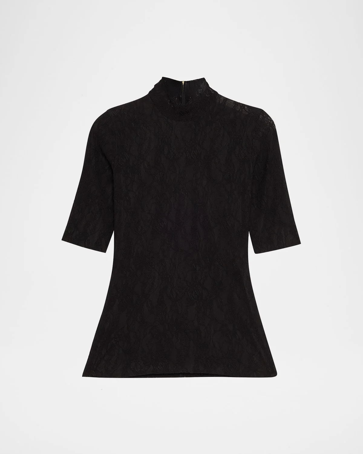 Mock-Neck Stretch Lace Short-Sleeve Top
