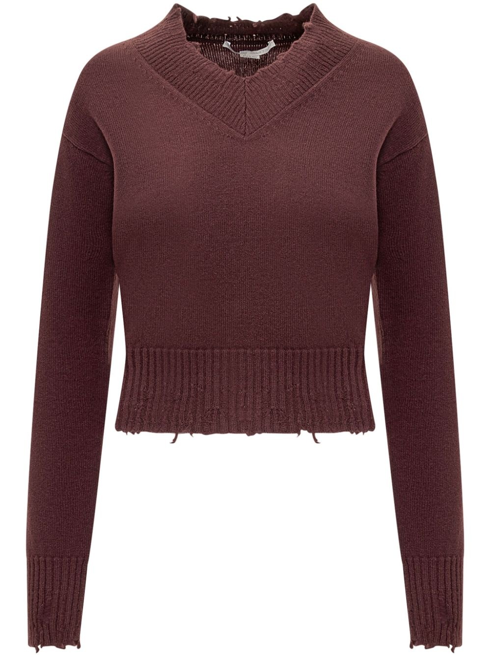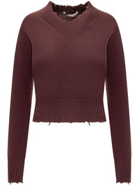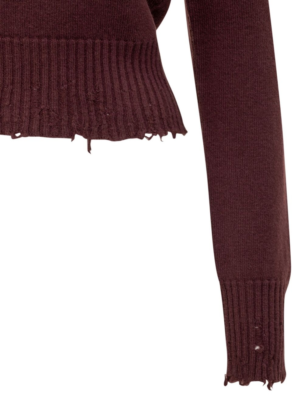 distressed jumper Highlights - Bordeaux red - V-neck - Long sleeves - Ribbed cuffs and hem Made in Italy Composition Virgin Wool 100%
