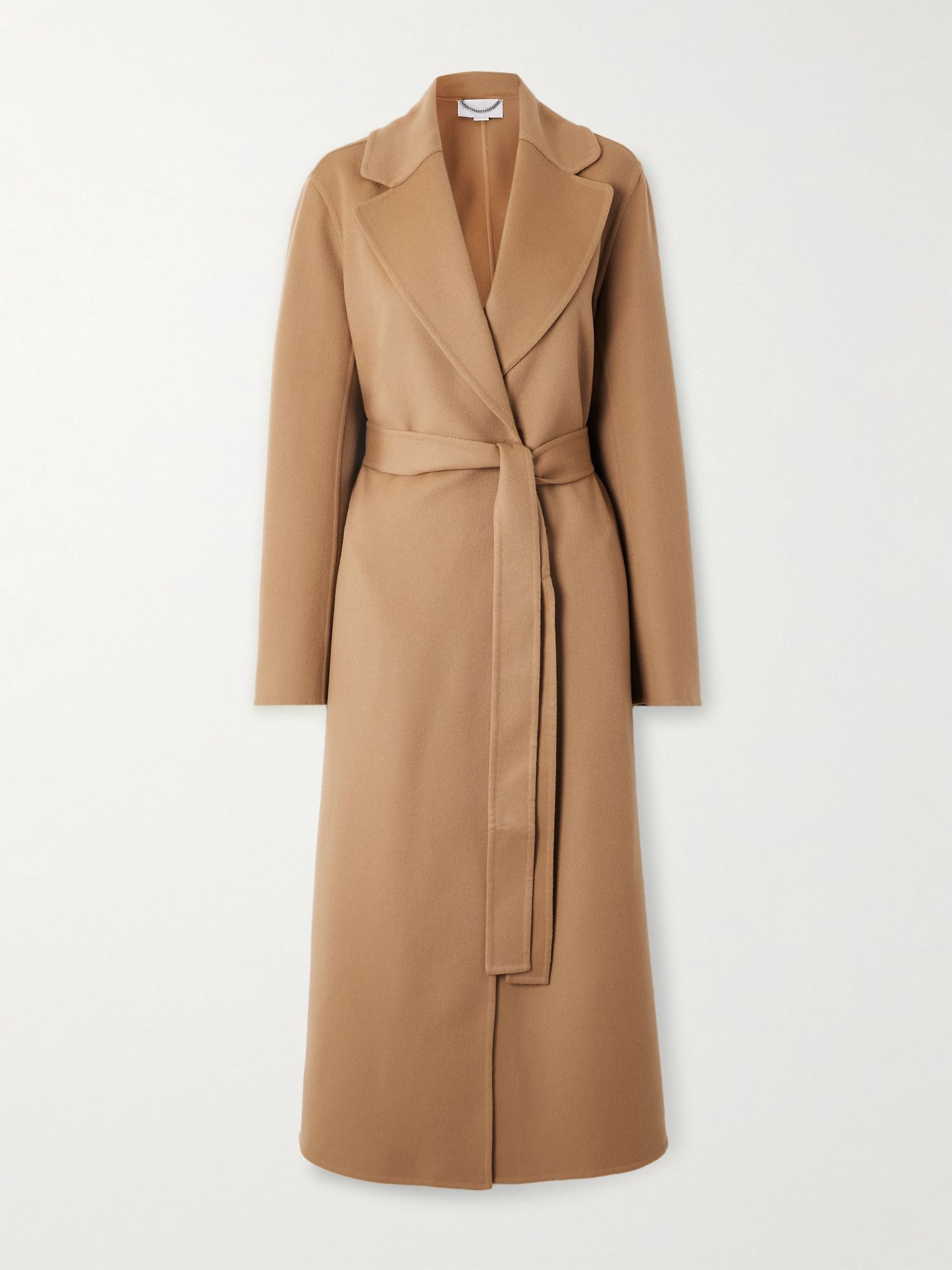Stella McCartney's Fall '25 collection offers a "wardrobe for the working woman" and a practical journey "from the office to going out." This coat is made from soft wool in a relaxed shape and wraps around your frame with a self-tie belt. Care for it well and you'll wear it season after season. Lower-Impact Materials. This product is made using at least 50% lower-impact materials or ingredients. Find out more about our NET SUSTAIN criteria here. Size & Fit - Fits true to size, take your normal size - Intended for a relaxed fit, use the tie belt to cinch in at the waist - Mid-weight, non-stretchy fabric - Model is 175cm/ 5'9" and is wearing an IT 40 Model measurements: - Bust: 81cm/ 32" - Waist: 62cm/ 24.5" - Hip: 89cm/ 35" Details & Care - Light-brown wool - Slips on - 100% wool; lining: 52% viscose, 48% cotton - Dry clean - This product has been made with responsibly sourced wool, originating from farms protecting animal welfare and implementing progressive land management practices