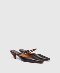 Item 810536AP02502007 New for Summer 2025, these sharp Stella Spur kitten heels are hand-sculpted from a vegan, cruelty free alternative to animal leather. Their chiseled outline is intentionally carved to elevate any ensemble with an edge. Finished with an exaggerated pointed toe, they’re primed to peak out from iconic Stella denim jeans. - Color: Black - Vegan leather alternative upper - Adjustable buckle fastening - Pointed toe - Angular, sculpted kitten heel - Handcrafted in Italy Product Care & Fit Advice Care: Spot clean only with soft damp cloth Composition: Upper 54% polyester, 46% polyurethane - Fit: True to size - Heel height: 90mm - All of our shoes and accessories are made from non-leather materials in keeping with our cruelty-free ethos.
