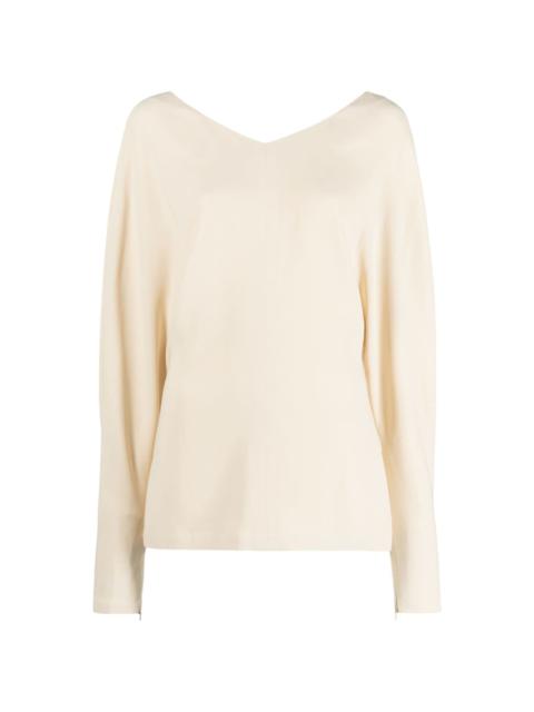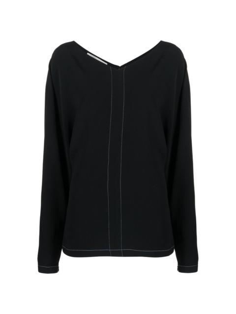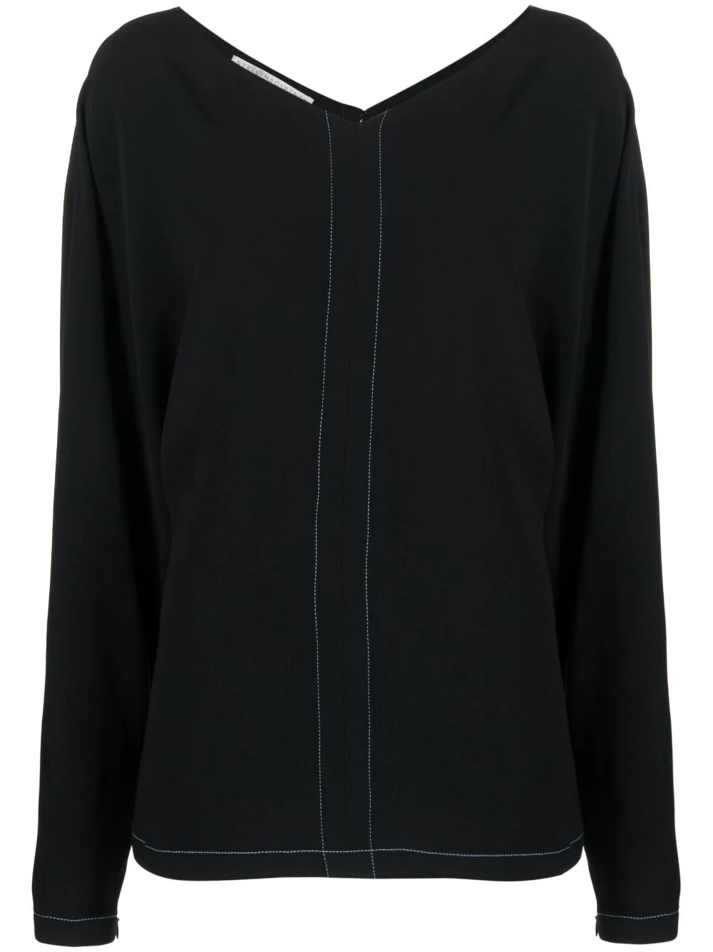 stitched V-neck long-sleeve blouse This long-sleeve blouse from Stella McCartney is cut from forest-friendly viscose blend fabric and framed with contrast topstitching that subtly pops against the black base. Highlights - Black - Stretch-design - Contrast stitching - V-neck - Long sleeves - V-back Imported Composition Viscose 66%, Acetate 30%, Elastane 4% SIZE & FIT Model measurements Height 5 ft 10 in(1.79 m) Bust/Chest 31.49 in(80 cm) Hips 35.03 in(89 cm) Waist 23.62 in(60 cm) FittingInformation Designed for a slim fit that sits just away from the body offering a close yet comfortable fit Made from a midweight stretch fabric, this piece offers elasticity and flexibility when worn This piece fits true to size – take your usual size Washing instructions Dry Clean Only