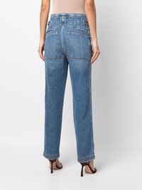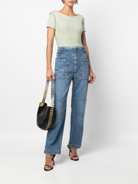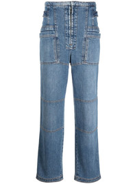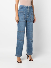 straight-leg cargo jeans Highlights - Medium blue - Stretch-cotton - Multiple cargo pockets - Front zip fastening - High waist - Straight leg Made in Italy Composition Cotton 98%, Spandex/Elastane 2% SIZE & FIT Model measurements Height 5 ft 10 in(1.78 m) Bust/Chest 33.07 in(84 cm) Hips 35.82 in(91 cm) Waist 25.98 in(66 cm) FittingInformation This piece fits true to size. We recommend you get your regular size Designed to be fitted at the waist and hips, loose over the leg Made with a mid-weight stretch fabric Washing instructions Machine Wash