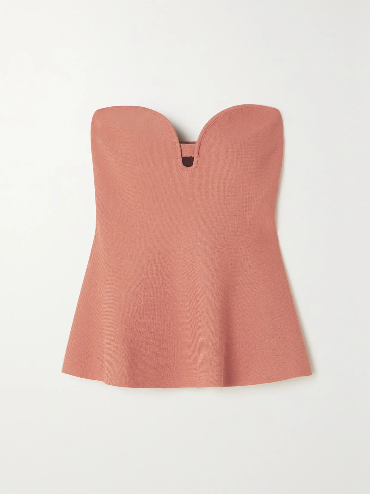 Stella McCartney's top is simple and flattering, making it a great choice for nights out. Designed with a strapless neckline, it's made from blush stretch-knit that hugs your bust before falling to a fluttery peplum hem. Wear yours with a midi skirt or jeans.