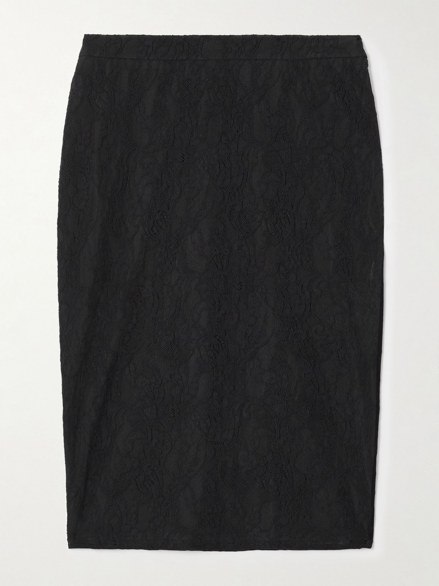 Stella McCartney's Fall '25 is about "all stages of womanhood." This skirt is cut from stretch-lace with a mid-rise and knee-grazing hem. Style yours with heeled sandals and a blouse. Size & Fit - Fits true to size, take your normal size - Knee-length, designed to be worn at the waist - Lightweight, slightly stretchy fabric - Model is 177cm/ 5'10" and is wearing a size Small Model measurements: - Bust: 86cm/ 34" - Waist: 65cm/ 25.5" - Hip: 90cm/ 35.5" Details & Care - Black stretch-lace - Concealed zip fastening along side - 85% polyamide, 15% elastane; lining: 69% polyamide, 31% elastane - Fully lined - Dry clean