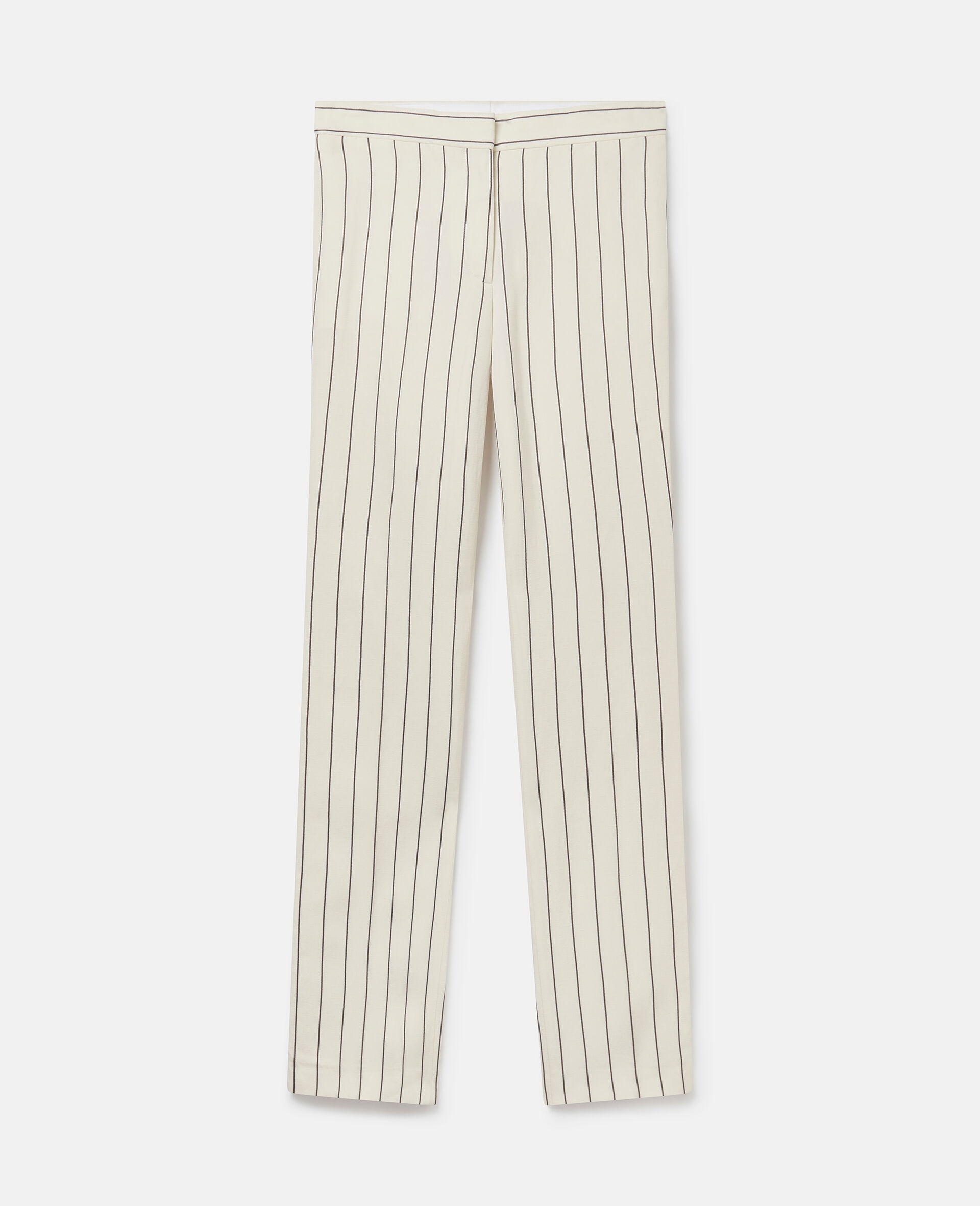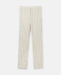Item 6401763DR3759211 Stella McCartney’s music DNA remains a strong inspiration for Summer 2024. Cascading to the floor, these slouchy trousers are cut from a light and airy viscose and linen blend that skims the skin – patterned with all-over stripes to accentuate the slouchy, straight-leg silhouette. Pair them with the matching blazer and a pair of S-Wave trainers to complete the runway look. - Colour: Cream - Cream with black pinstripe - Black pinstripe - Mid-rise - Straight leg - Flat waistband - Front pleats - Concealed zip fastening Product Care & Fit Advice Dry clean only Composition: Main fabric: 100% viscose Size: Fits true to size Designed for a regular fit Midweight, non-stretch fabric