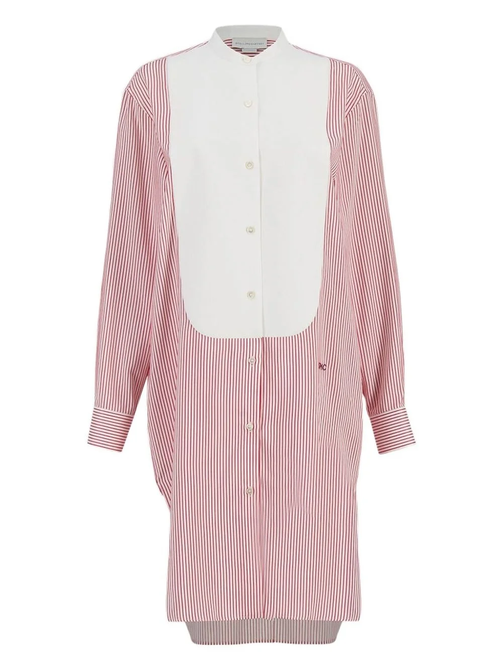 striped shirt dress Highlights - Red and white - Button fastening - Classic collar - Long sleeves - Curved hem - Oversized front panel Imported Composition Silk 100%