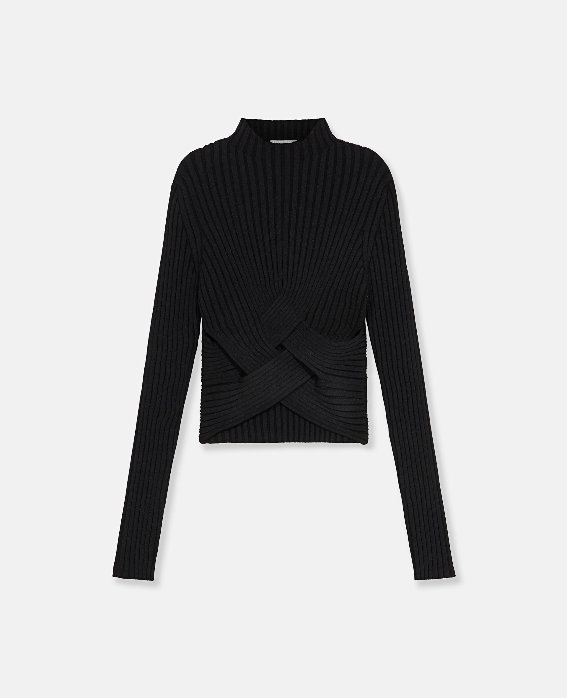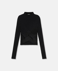 Drawing together an athleisure mood and feminine appeal, this cropped jumper energises Spring 2023's rewilding influence. The black jumper is crafted from a tight-fitting forest-friendly viscose-blend technical knit with a criss-cross banded hem. - Colour: Black - Forest-friendly viscose-blend technical knit - High neck - Long sleeves - Criss-cross hem - Slip-on style - Cropped length - Made in Italy Product Care & Fit Advice - Care: Dry clean only - Composition: 83% viscose, 17% polyester