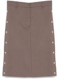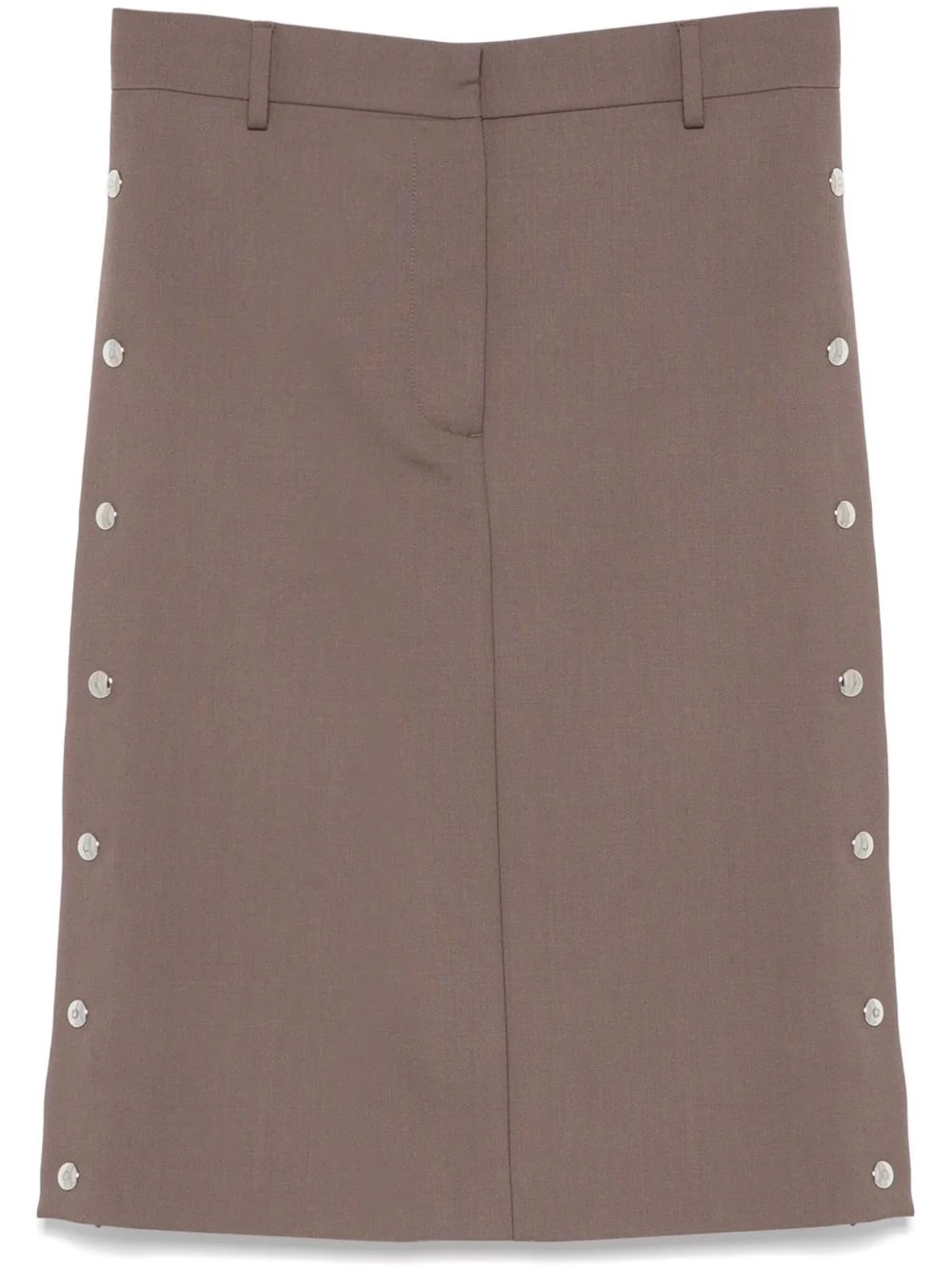studded midi skirt Highlights - Taupe brown - Concealed front button, hook and zip fastening - Press-stud fastening - Belt loops - Rear welt pocket Made in Italy Composition Metal 100%, Wool 100% SIZE & FIT Model measurements Height 5 ft 11 in(1.8 m) Bust/Chest 31.49 in(80 cm) Hips 36.61 in(93 cm) Waist 24.4 in(62 cm) FittingInformation This midi-length skirt is intended to be worn just below the waist Made from a midweight non-stretch fabric