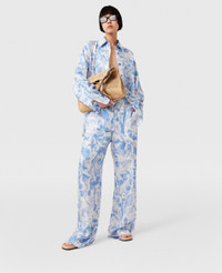 Item 6401083ES2404001 Encapsulating the summer Stella girl, our High Summer sunglasses pattern is found all over this pair of feather light, breezy trousers. Spun from airy organic silk, they’re cut to a mid-rise with straight legs, finishing at floor-length cuffs. Pair them with the coordinating shirt. - Colour: Blue and white - Blue and white sunglasses pattern - Mid-rise - Straight leg - Flat waistband - Elasticated waistband - Slips on - Made in Romania Product Care & Fit Advice Care: Dry clean only Composition: Main fabric: 100% silk Size: Fits true to size Designed for a regular fit Lightweight, non-stretch fabric